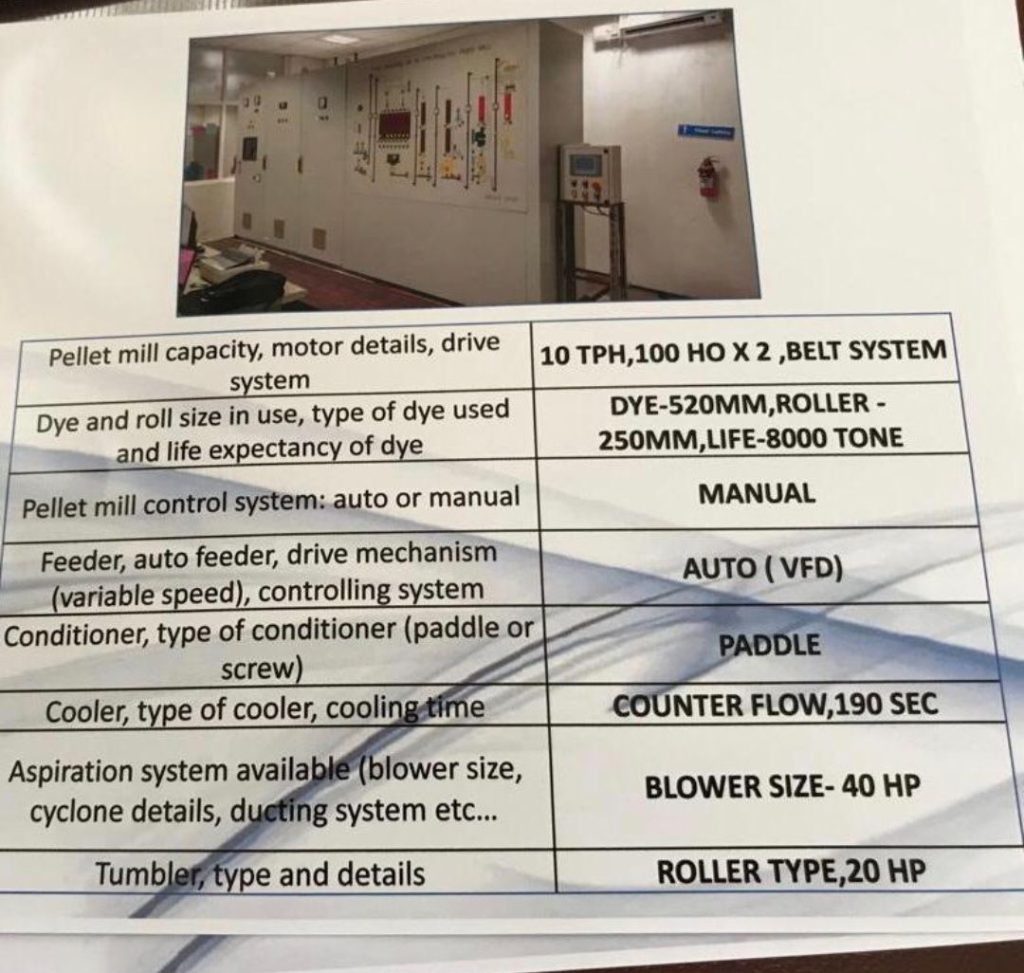 Pellet Mill: 10 ടൺ/മണിക്കൂർ (100 HP × 2 Motors)